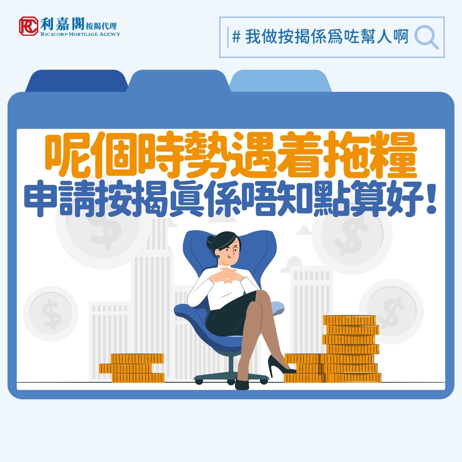 利嘉閣按揭代理有限公司屬行內龍頭企業之一,本公司的每位按揭專員有豐富銀行、貸款行業及按揭轉介經驗,善於拆解按揭奇難雜症,不單服務經利嘉閣買樓的客戶,任何按揭貸款,包括一手、二手、轉按、工廈、商舖、甩名、貸款整合,以至海外物業按揭等,都可提供專業分析及一站式服務,助置業人士輕鬆完成繁複的按揭流程。絶對$0 收費。